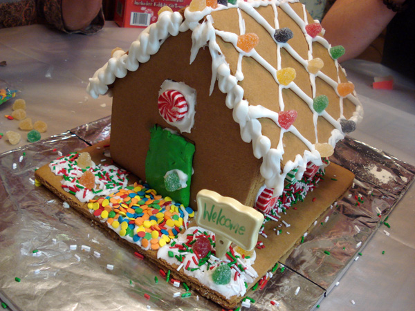 See, the gumdrops don't really hide the bad icing job. Maybe the confetti front walk will distract the eye.